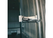 Dvere do parnej sauny HARVIA - čierno lakovaný hliníkový rám, chrómované pánty acidproof, oválne chrómované madlo, bez prahu. Farba skla satinovaná. Vonkajší rozmer rámu sklenených dverí je 79 x 189 cm, hĺbka rámu je 6 cm.