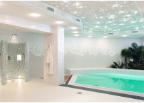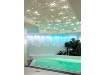 Hviezdne nebo, 300 ks plastových vlákien, projektor vytvára realistický efekt podobný hviezdam pri ktorom svetlo preblikáva. Tento typ hviezdneho neba má plastové vlákna a preto sa hodí pre parné sauny a infrasauny.