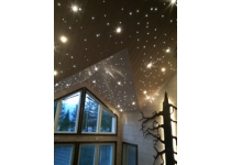 Hviezdne nebo, 200 ks plastových vlákien, projektor vytvára realistický efekt podobný hviezdam pri ktorom svetlo preblikáva. Tento typ hviezdneho neba má plastové vlákna a preto sa hodí pre parné sauny a infrasauny.