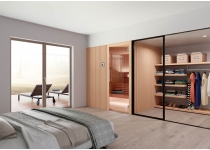 Fínska sauna radu Auroom LIBERA s rozmermi 150x180 cm s celopresklennou prednou stenou. Sauna je vyrobená z osikového alebo jelšového dreva - záleží na vás ktoré prevedenie si zvolíte.