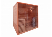 Moderná finská sauna Nordic s rozmermi 2000x1700x2100mm maximálne pre 4-5 osôb je vyrobená z kvalitného dreva kanadskej borovice hemlock, zadná stena je vyrobená z kremenca. Výhodou je jednoduché a rýchle zostavenie a veľká presklená časť, ktorá pôsobí vzdušne a elegantne. Sauna sa umiestni do miestnosti vždy tak, aby pre účel vetranie mala odstup 30-50 mm od najbližšej steny. Nie je určená pre komerčné a záťažové prevádzky. V hornej časti sauny, kde už sa vytvára vyššia teplota, je v paneloch od výšky 1100mm a v celom stropnom paneli minerálna vata.