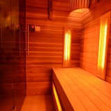 Tepelný komfort zabezpečuje 6 žiaričov Philips Vitae o jednotlivom výkonu 350W. Tri žiariče sú v klasickej polohe, dvaja umiestnené pod lavicou pre zahriatie nôh a jeden extra pridaný do šikmého stropu.