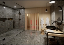 Harmonická kombinácia dreva a skla - Infrasauna Auroom IRRADIA s rozmermi 100x120 cm. Sauna je vyrobená z osikového dreva, ktoré je spracované pomocou tepelnej úpravy tzv. Thermowood.