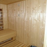 Obklad sauny je z fínskeho smreku, lavice z africkej vŕby - Abachi.