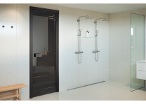 Sklo dverí je tvrdené 8 mm v sivom odtieni.