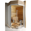 Kúpeľňová sauna HARVIA Sirius - rozmer 110 x 114 cm. Štandardný vnútorný obklad sauny Sirius je z jelše alebo z osiky. Lavice abachi v dizajne Formula. Sauna je vybavená elektrickými kachľami HARVIA Vega BC35 s výkonom 3,5 kW, vedrom, naberačkou a teplomerom s vlhkomerom.