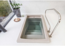 Štýlový ochladzovací bazénik z kompozitného materiálu. Je opatrený prílivovou hranou a má povrch z umelého kameňa - gelcoat (materiál, ktorý vyniká dokonalosťou povrchového spracovania, da sa opravovať a tvorí dojem kameňa). Výber z viac farebných variant. Rozmery – 120 × 190 × 120 cm Hmotnosť – 120 Kg Objem vody – 930 l