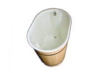 Ochladzovacia kaďa ELEGANCE s laminátovou vložkou v bielej farbe. Súčasťou je sedačka, tiahlo na ovládanie výpuste. Kaďa neobsahuje schodíky ani napúšťací trysku. Rozmery: 110x78x108 cm. Vonkajšie obloženie je z kvalitného smrekového dreva. Kaďa sa napája na odpad.