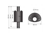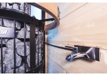 Kohútik je umiestnený mimo ohrievač aj kachle, aby zabránil starnutia teplej vody, možno ho nainštalovať na lavičky alebo na stenu. Maximálne množstvo saunových kameňov 15 kg s priemerom 5-10 cm, samotný ohrievač váži 7 kg, rozmery 28x36x91 cm, priemer vývodu dymu 115 mm.