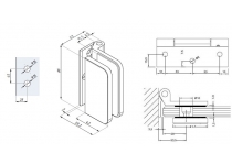 Hliníkový pánt určený pre hrúbku skla 8mm/10mm/12mm. Vŕtanie: 2x 16mm, rozteč 45mm, 28mm od hrany skla.