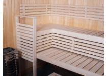 Dekoratívny obklad sauny, materiál dub. Rozmer panela 115x765mm. Dosky použité v dekore so šírkou 58mm a hrúbkou 3-22mm.