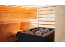 Moderná sauna o rozmeroch 2060x1608x2016 mm je vyrábaná priamo vo Fínsku a je zabezpečená tak, aby ste si ju mohli doma smontovať aj sami. Dominantou je její velká prosklená predná časť, ktorá prepúšťa prirodzené svetlo a pôsobí vzdušne a elegantne. Súčasťou sauny sú sklenené dvere o rozmeroch 1897x600x8 mm z vysoko kvalitného bezpečnostného skla. Saunové lavice sú vyrobené z osikového dreva, zatiaľ čo strop a steny z masívneho smrkového dreva, ktoré sú charakteristické svou súkatou štruktúrou a smolníky a saune dodávajú tradičný vzhľad.