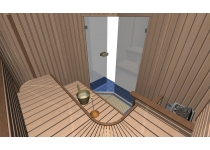 Rodinná sauna je vyrábaná priamo vo Fínsku a je dodávaná tak, aby ste si ju mohli doma zmontovať aj sami. Vchod je umiestnený vo skosenom rohu. O vyhriatie sauny sa starajú elektrické pece HARVIA Vega BC80 s výkonom 8 kW/380 V 3N. Steny sauny sú vyrobené z fínskeho smreku, zatiaľ čo tri lavice z príjemného dreva africkej vŕby Abachi. Farbu celosklenených dverí do sauny si môžete zvoliť z dvoch odtieňov - číra alebo bronze.