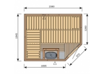 Rodinná sauna je vyrábaná priamo vo Fínsku a je dodávaná tak, aby ste si ju mohli doma zmontovať aj sami. Vchod je umiestnený vo skosenom rohu. O vyhriatie sauny sa starajú elektrické pece HARVIA Vega BC80 s výkonom 8 kW/380 V 3N. Steny sauny sú vyrobené z fínskeho smreku, zatiaľ čo tri lavice z príjemného dreva africkej vŕby Abachi. Farbu celosklenených dverí do sauny si môžete zvoliť z dvoch odtieňov - číra alebo bronze.
