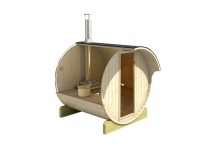 Sauna o malých rozmeroch ale s veľkým potenciálom. Toto zvláštne a jedinečné riešenie vonkajšie sauny pripomína veľký sud, ktorý je však plne funkčný a poskytuje príjemný priestor pre saunovú relaxáciu. Vo vnútri sa skrýva jedna saunovací miestnosť, kam sa pohodlne zmestia až 4 osoby. Dovnútra sa vchádza dverami, ktoré môžu byť drevené alebo celosklenené.