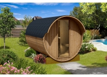 Sauna sa skladá z dvoch miestností - sauny a praktické odpočivárne. Toto zvláštne a jedinečné riešenie vonkajšie sauny pripomína veľký sud, ktorý je však plne funkčný a poskytuje príjemný priestor pre saunovú relaxáciu. Vnútri sa skrýva saunovací miestnosť, kam sa vojde až 6 osôb. Dovnútra sa vchádza dverami, ktoré môžu byť drevené alebo celosklenené.