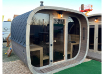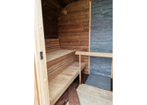 Sauna o dvoch miestnostiach s príjemnou vonkajšou terasou v sebe ukrýva ako saunu tak i odpočiváreň. Sudové sauna až pre 4-6 osôb. Prevedenie THERMOWOOD. Vhodné pre kachle elektrická aj na drevo. Sauna je dodávaná vrátane lavíc, podlahy, šindle, ventilácia, sklenených alebo drevených dverí, ozdobného lemu, nerezové obruče, troch podpier a odkloněného ukončenie strechy po stranách. Rozmery: 3300x2050. Rámy dverí, okien a rôzne dekorove prvky sú zo svetlejšieho dreva, ktoré možno natrieť iba dodatočne.