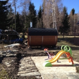 Sudová sauna - jedna miestnosť s terasou. Súčasťou terasy - verandy sú odpočinkové lavičky.