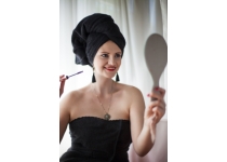 Elegantný čierny turban pomôže šetrne vysušiť mokré vlasy a navyše sa v ňom budete cítiť ako exotická princezná. Využijete ho aj počas kozmetických procedúr, v saune pre ochranu vlasov alebo vo vani plnej peny.