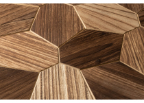 Dekoratívny obklad sauny, materiál jaseň thermowood. Približný rozmer štvorcov 58x58mm a panelu 115x740mm s hrúbkou 3-22mm.