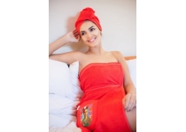 Luxusný krémový turban na vlasy vhodný nielen do sauny na ochranu vlasov, ale aj počas SPA procedúr doma alebo v salóne. Turban je vyrobený z luxusného froté s väčšou gramážou, ktorá zaručuje výbornú savosť a skvele drží tvar vďaka praktickému zapínaniu na gombík v zadnej časti.